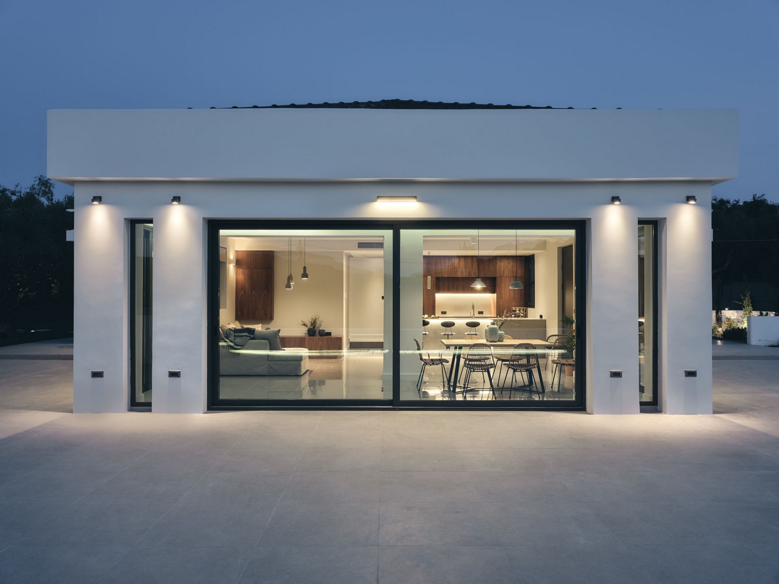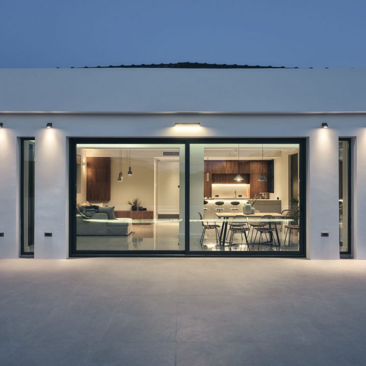 Contained inside a property of 1.500 square meters we have developed this building containing three en-suite bedrooms along with living and dinning rooms. The prevailing lean geometry of furniture and overall decoration establish harmony, while the extensive windows let the sunlight merely flood the interiors.