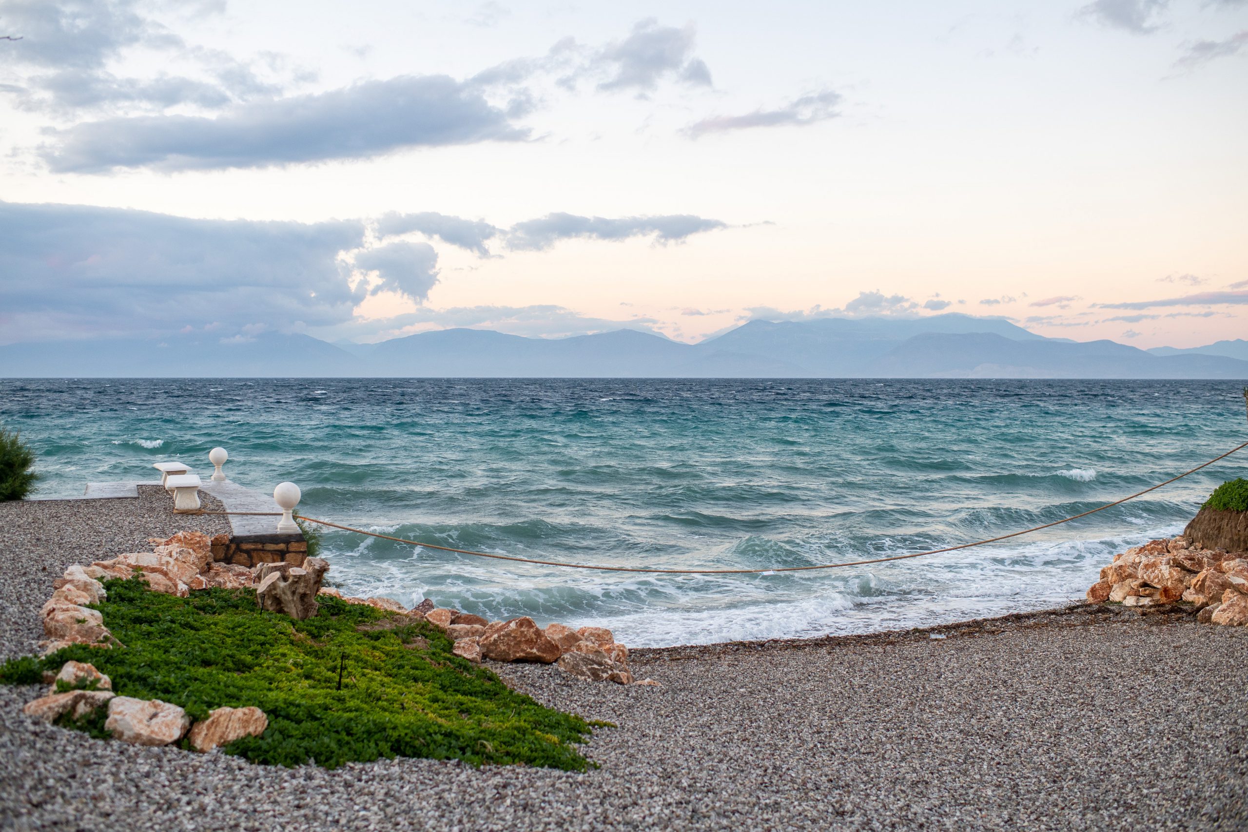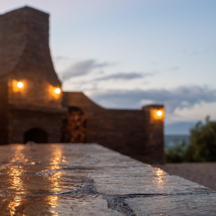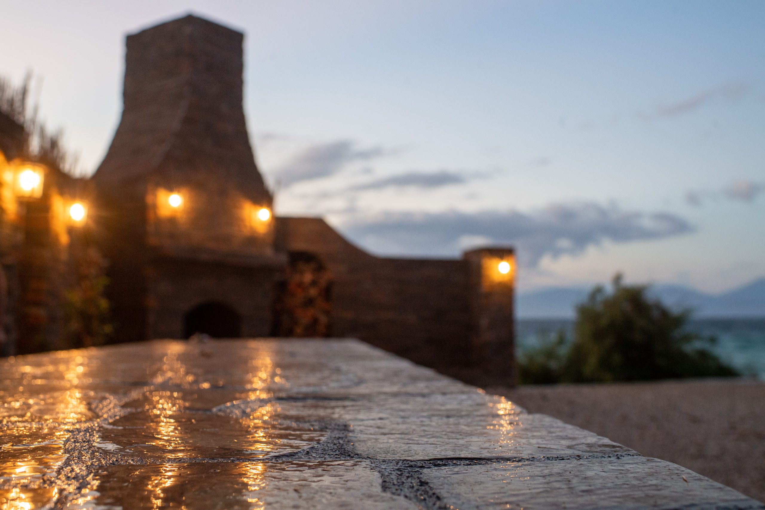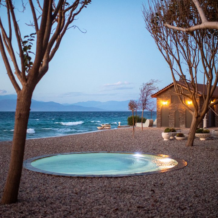 We received buildings wounded by time and saltiness, lacking operational infrastructures that were set as prerequisite from scratch. Within the property of 3.000 squares meters our team totally developed four buildings for accommodation and dinning. The first floor of the main residence was extensively redesigned, resulting in an en-suite master bedroom with unique aesthetics and boundary-free view of the sea. The central guesthouse was structurally reinforced and a new internal layout was proposed, in order to create two supplementary bedrooms along with two bathrooms and a kitchen / dining room. What used to be a warehouse was now transformed to a fully functional gym, offering droplets of well being and leisure to the occupants. The building complex concluded with the old kiosk being converted to a spacious dining room with fireplace that is merely sprayed by the sea.